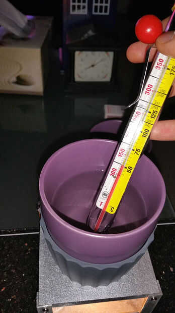 Como quería hacer orilla que esto trabajaría antes de dar como regalo a mi papá hizo algunas pruebas básicas con un termómetro de cocina (dulces) y las dos tazas idénticas.
