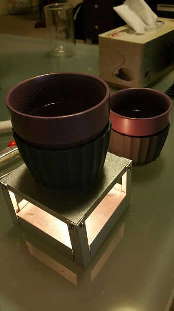 Una taza en el calentador, el otro no estaba. Ambos fueron llenados con agua hervida.