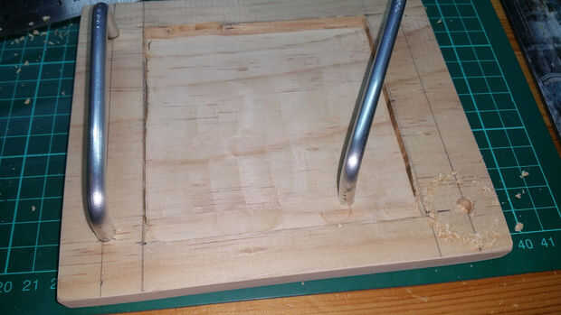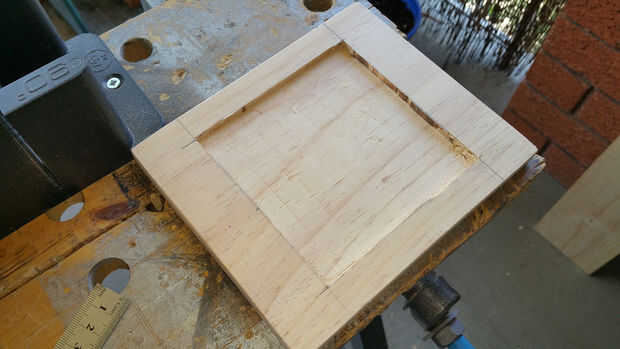 - Configurar Router con la broca de corte a una profundidad de 5mm y luego cortar la sección cuadrada del centro. Tenga cuidado de no correr a las esquinas como puede usar un cincel para eliminar el material restante.