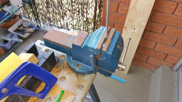 - Lugar la parte marcada de 30mm de la barra en un vicio con el resto de la varilla sobresale.