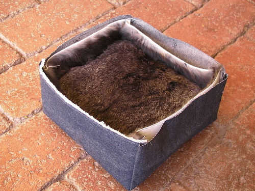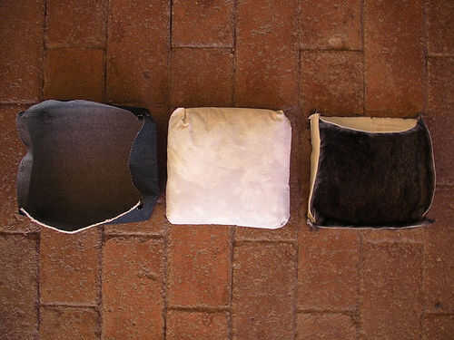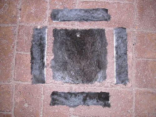 - Como alternativa, puede pieza pieles más pequeñas para formar un todo que es 12 "x 12" Dimensiones exteriores. Luego puede cortar las esquinas, doble los lados y coserlas juntas.