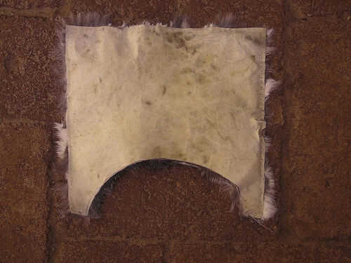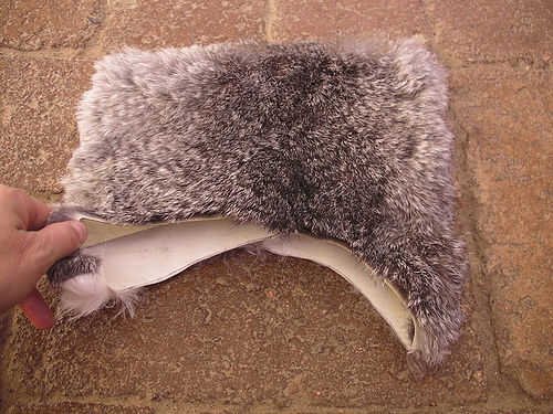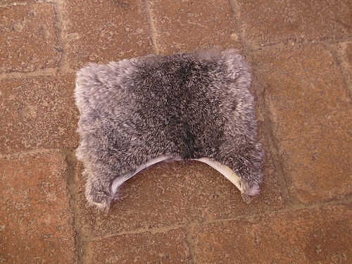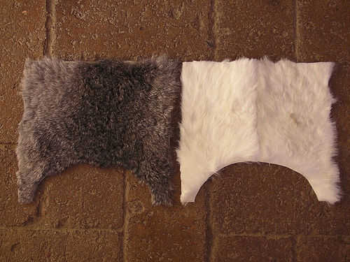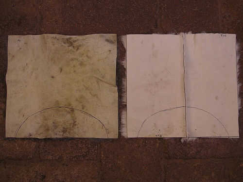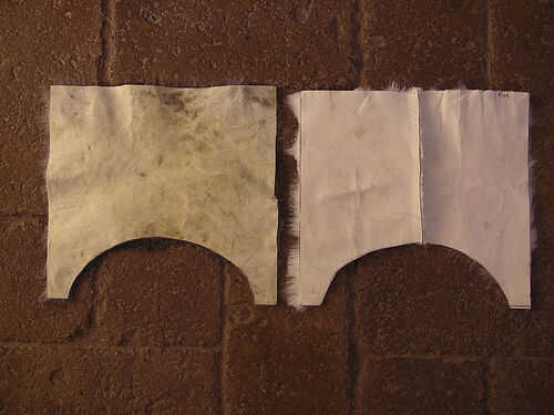 - Cortar dos piezas de piel, cada 11 "x 11". Si no tienes cualquier bastante grande, coser pieles más pequeños juntos.