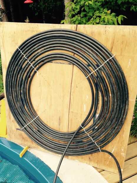 Siguen establecen la tubería hasta que haya terminado su colector. Una vez que todo el tubo está en el tablero de ajustar las bobinas son todo incluso y no atascado contra el otro, que o si no en mal estado. Cuanto más uniformemente se juegan hacia fuera mejor para general calor colección.