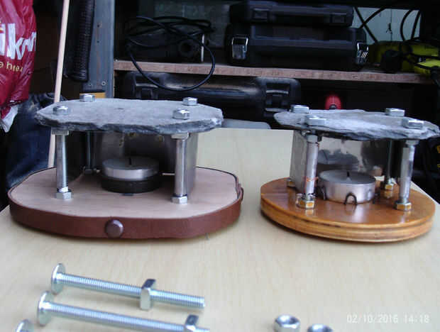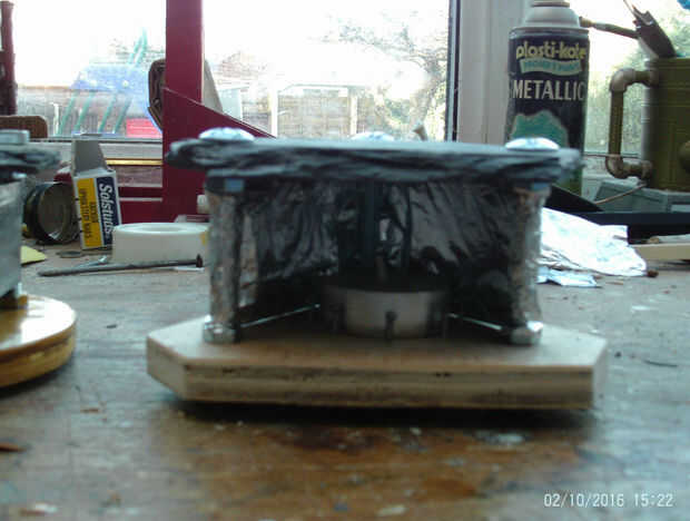 En las otras piezas usé secciones de lata picado hacia fuera y doblada alrededor de los pernos para proporcionar una pared alrededor de tres de los cuatro lados. Esta luz reflejada mantiene corrientes de aire lejos de la llama y tal vez aseguró que el calor entró directamente en la pizarra pero no estoy muy seguro de cuanta diferencia hace honestamente.