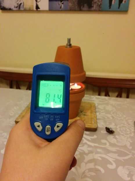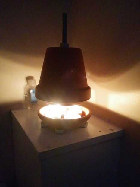 Mientras escribo esto tengo funcionando uno en el baño en la planta baja que siempre está frío. Si pones tu mano sobre la parte superior usted puede sentir el aire caliente que sale. Es necesario acercarse a las ollas de la base en esta foto, son un poco demasiado lejos.