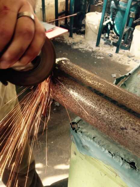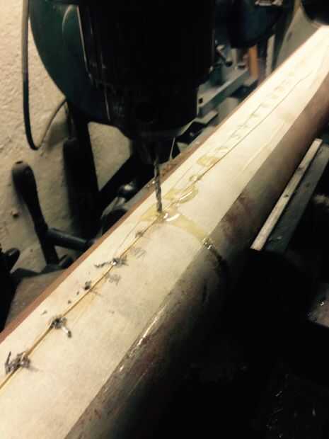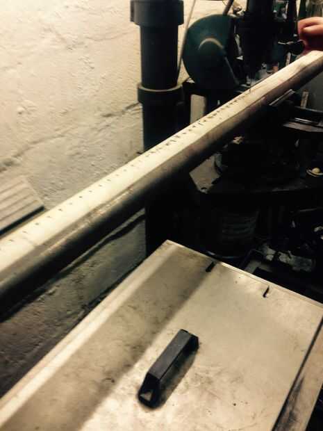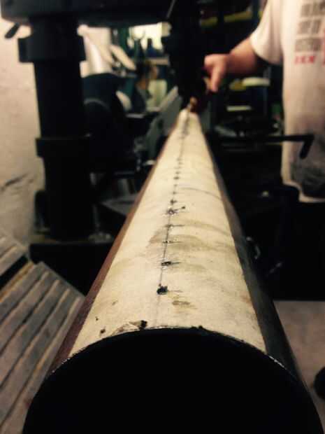 El tubo de acero es aproximadamente 4 pies de largo y hemos perforado un orificio de 0,8 mm con un taladro de columna aparte dejando 100mm en el extremo de diafragma de 40 mm.