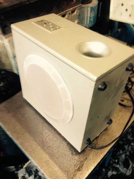 Y que está sobre él listo todo lo que queda es tomar cualquier altavoz trató de un sub de sonido envolvente pero no funcionan tan bien como esperaba tan probado un pequeño sonido delantero Altavoz de sonido envolvente y obtuvo mucho mejores resultados.