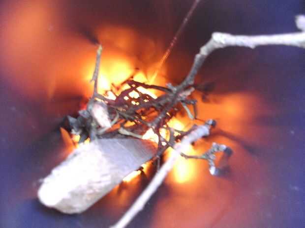 Ahora ponga la tapa en el cubo y ya está listo para iniciar el fuego. Y listo! Fuego sin humo, eficiencia y calidez acogedora para sentarse fuera en la estación fría.