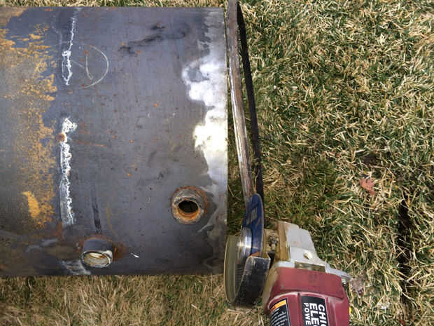 2. luego corté el tubo de la parte superior del tanque. Ponga el disco de corte plano en el tubo y corte suavemente la soldadura moviéndose alrededor de la tubería hasta que era libre.