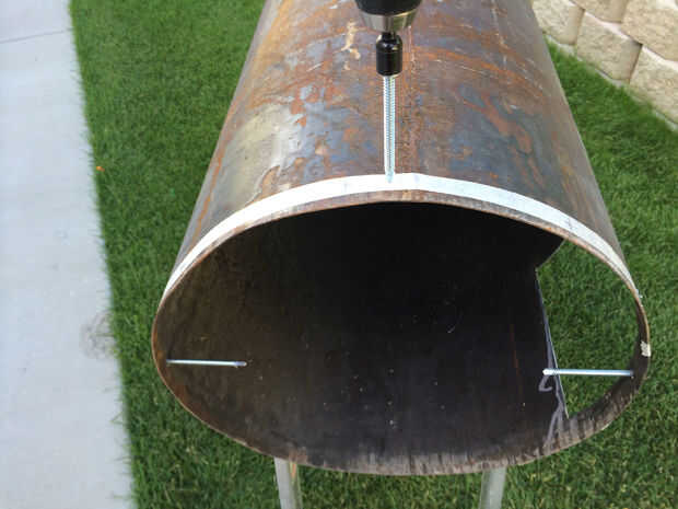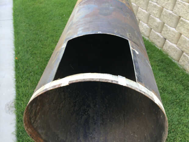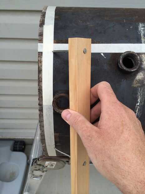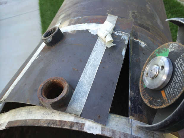 2. transfiere las mediciones a alguna cinta de enmascarar en el tanque y luego recortar con la amoladora y disco de corte.
