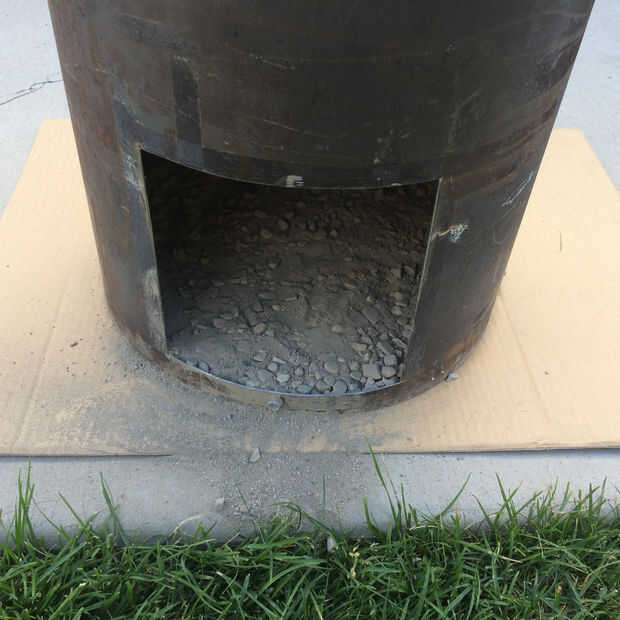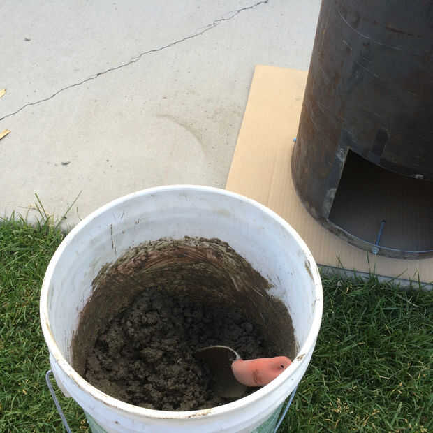 4. luego llena la superficie de base con hormigón seco para obtener la cantidad correcta que necesitaría. A continuación, el hormigón en un balde y fundición de la base de la cámara de combustión.