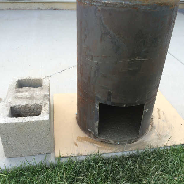 Ahora o hacer que la cámara de combustión. Mi idea original era hacer un cohete de la estufa tipo configuración pero no hemos construido esa parte aún, así que la puerta es las misma medidas como un bloque.