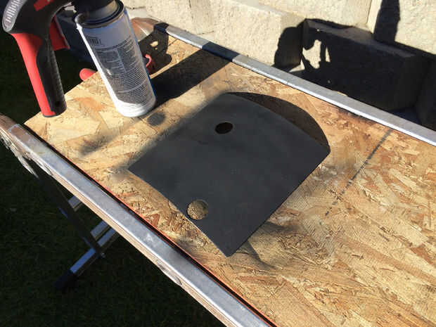 5. mientras el hormigón se me cortan las guarniciones de la puerta y pintaron la puerta y calentador mat negro que esto fue ayudar a absorber la luz solar.