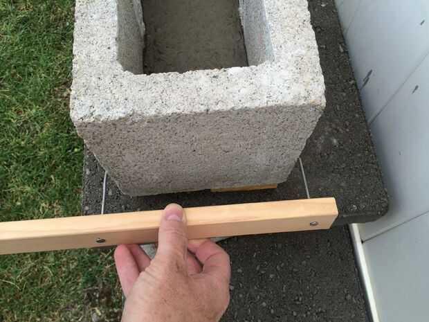 1. para obtener el tamaño del bloque de cerca de 8 "x 8" en el tanque de curvado hice una herramienta sencilla de una pieza de madera y 2 clavos.