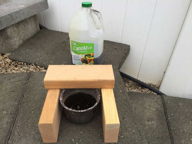 1. pila de viejos de madera de construcción como en mi zona y algunos residuos de aceite (antigua cocina) en un acero del intestino en la cámara de combustión. Agrego algunos (aproximadamente 80 ml) de gas gasolina o blanco para el aceite para obtener el fuego comenzó.