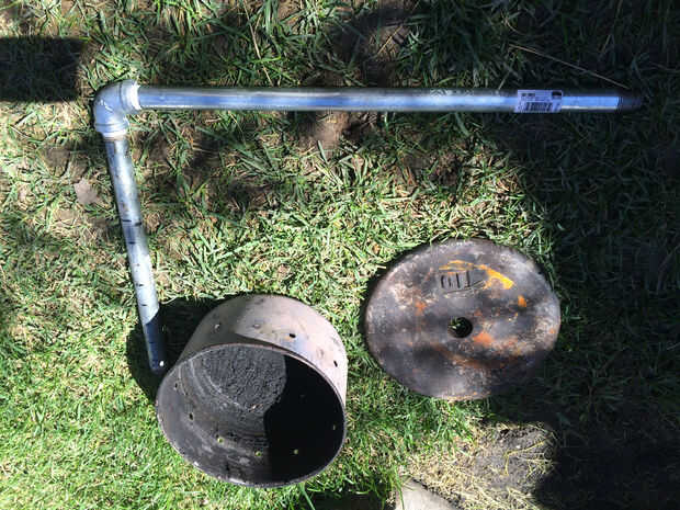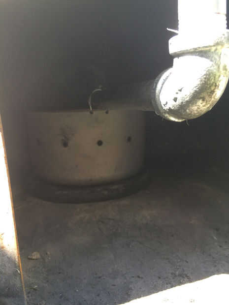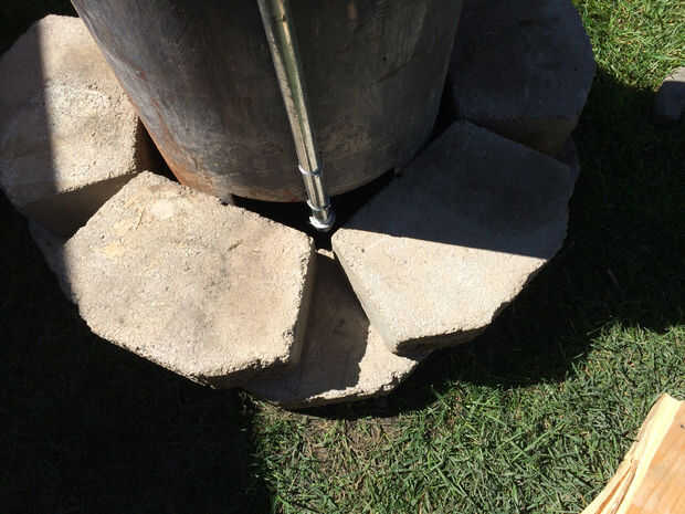 1. fijar una L en forma de tubo de 1/2" a la olla y de la cámara de combustión con el alambre poniendo el peso en la parte inferior de la olla.