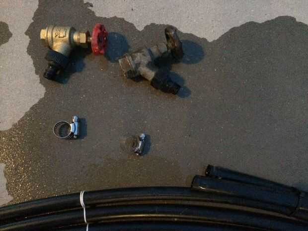2. conectado una válvula para el agua suave para el patio y corrió el agua hasta el aire de la tubería. Luego cerró el fin de perder y entonces el extremo conectado al suministro de agua tenía un agua llena de tubos.