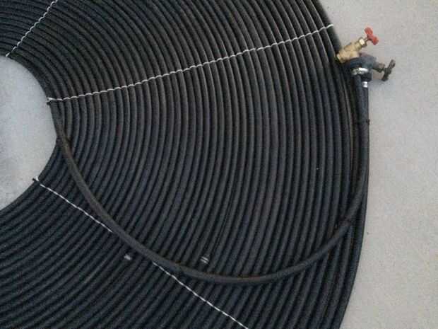5. ATA ambos extremos de la tubería hasta el borde exterior de la bobina en el mismo lugar para la conexión a la bomba y la piscina.