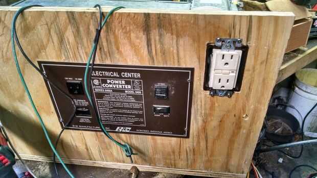 el inversor es (120v ac a 12v dc) vino con 2 salidas de pared separado uno puesto en el otro. Pensé que no necesitaba tanto de ellos así que sólo usé uno que era GFCI ya que se fuera con una pequeña posibilidad de que se humedezcan no quería ninguna parte en la posibilidad de conseguir chocado