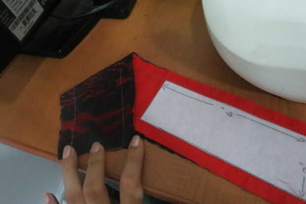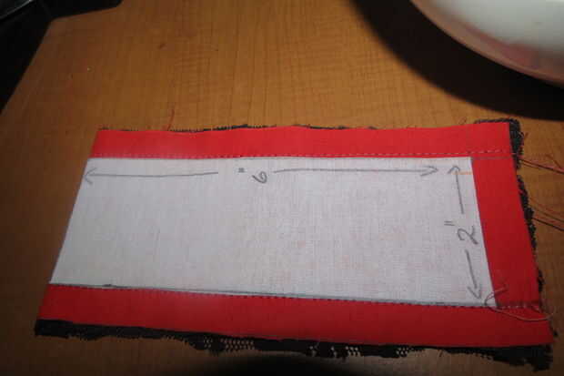 Colocar la pieza de encaje bajo el forro y coser a lo largo de los bordes para mantener en su lugar.