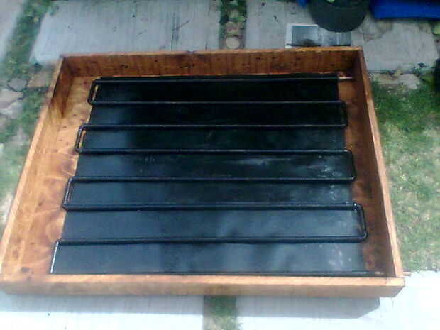 Hice un calentador solar pasivo en un intento de mantener a temps interior durante el día mientras estamos lejos de nuestra casa. Es tonto tener el horno funcionando cuando no hay nadie a casa, pero si la temp se mantiene más alta, el horno tiene que