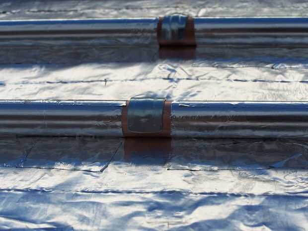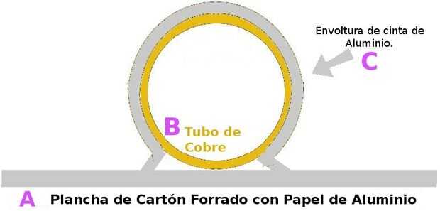 Lo se hace es poner el adhesivo un longitudinalmente de tramos, en cada tramo lo intentaremos será ponerlo en forma de ohmio, o mar, pegando al papel al tubo de cobre todo lo podamos hasta encontrar justo el punto de unión con el absorvedor.