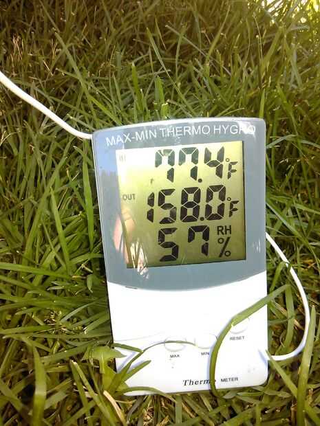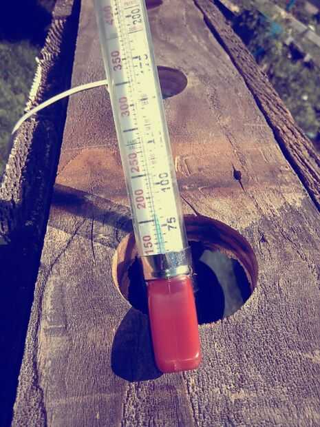 Dentro de unos 10 minutos de poner en el sol, me di cuenta que mi termómetro digital encabeza a 158 grados, así que agarré mi termómetro de caramelo, que puede no ser tan preciso en el temp del aire measureing, pero terminó recibiendo hasta unos 180 grados, gran éxito!!!!