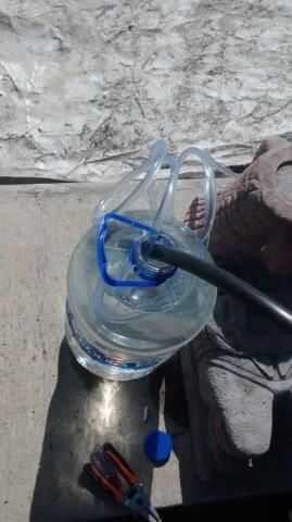 Se coloca una punta de un tramo de manguera transparente en el deposito del agua fria y la otra punta a la mayor de la bomba.
