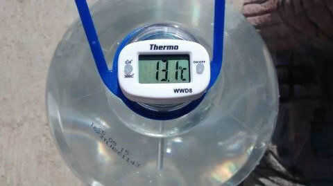 La prueba del calentador solar de agua se realizó alrededor de las 11:00 en el sur del Estado de México con una temperatura ambiente de 20 ° c y al iniciar la bomba, la temperatura del agua en el depósito era de 13.1oC después de 60 minutos de operación la temperatura del agua había claro a 36.3oC.