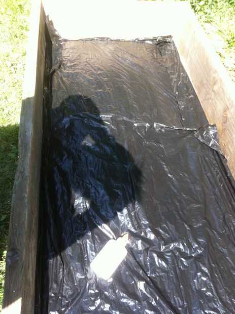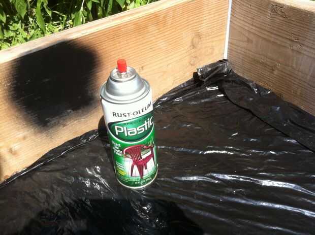 traté de tablero de la espuma de aerosoles para un proyecto en la escuela primaria y derritió. Pude ver que esto iba a suceder aquí, así que usé pegamento de algunos Elmer para pegar a una bolsa de basura de plástico negro. Y unas cuantas grapas para la buena medida. Entonces pinté los laterales madera negro.