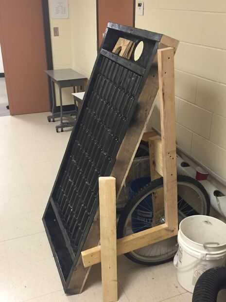 Hice un calentador solar pasivo en un intento de mantener a temps interior durante el día mientras estamos lejos de nuestra casa. Es tonto tener el horno funcionando cuando no hay nadie a casa, pero si la temp se mantiene más alta, el horno tiene que