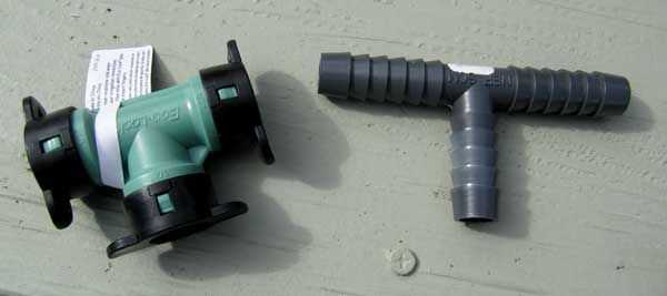 Hay unos cuantos tipos de divisores de T que se realizan para tubería de 1/2 pulgada.  Ambos, según el tipo en Home Depot, requieren que lavarte el pelo y luego secarlo, pero no lo hice.  Opté por el pequeño separador gris puesto que era la más fácil de usar.