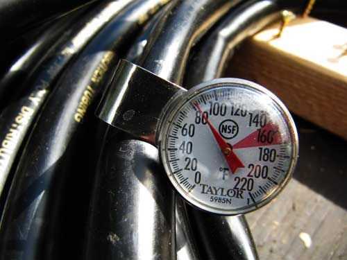 actualización: los últimos trabajos de configuración! Ayer cuando terminé de llenar con agua, en 1:30, es 68 grados. Fue 72 a 2:30, 78 en el 4:30, hoy a las 14:00 del mediodía 81, 88, ahora en 15:00 91 grados! Además, puedo ver el agua empuja fuera d