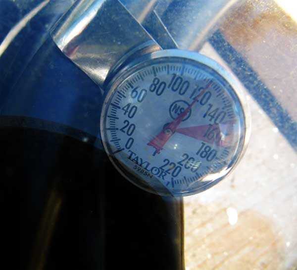 En un día bastante caluroso (80ish) el colector (bajo vidrio) muestra unos 120 grados.