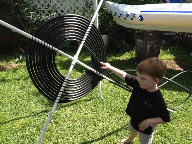 La manguera fue hecho girar en el marco a partir del centro y trabajando hacia el exterior. Nos tomó una ventaja de alrededor de 6 pies y atado a una pierna de la estructura, luego nos en guiar a la mitad para empezar la espiral. Hubo problemas con torceduras y que en alrededor de 5 en desde el borde de la guarnición la curva era bastante fácil que podríamos formar la forma sin enroscar la manguera. He marcado esta 5 en el uso de un marcador y sujeta la manguera al marco para empezar la espiral. Trabajando en trozos de unos 4 a 5 vueltas parece que funciona bien hasta las últimas etapas de la construcción. Después de cada conjunto de rotaciones se enganche, sin apretar la manguera con abrazaderas de plástico. Trabajando desde el último punto apretado que guía la bobina para que la manguera se encuentra uniformemente el bucle anterior. Demasiado apretado y demasiado floja se superpondrá y provocará dolor en el siguiente bucle.
