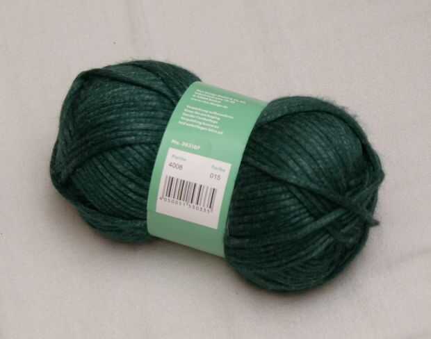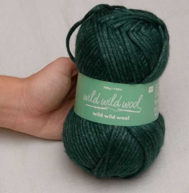 Estoy utilizando lana salvaje salvaje de rico diseño en color número 015 y agujas de tejer de 8mm de diámetro, supongo que esa es la talla 11 en los Estados Unidos.