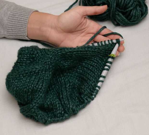 Calentadores, calentadores de la muñeca y gorra de punto fácil (5 / 10 paso)