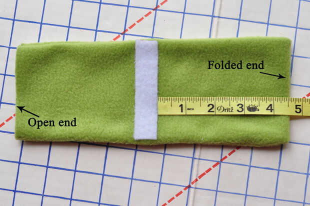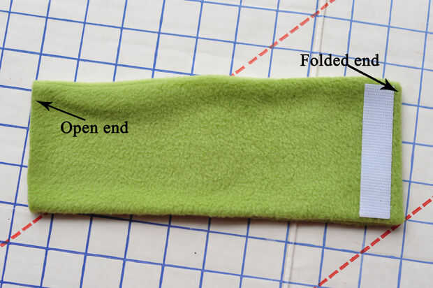 7. Tome un pedazo de velcro y coserlo (o pegarla) cerca del borde doblado de su rectángulo.