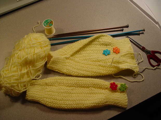 Volver a las agujas más pequeñas y puntada costilla, igual a la parte superior de aproximadamente 3 1/3" lo que la longitud total 11 1/2".
