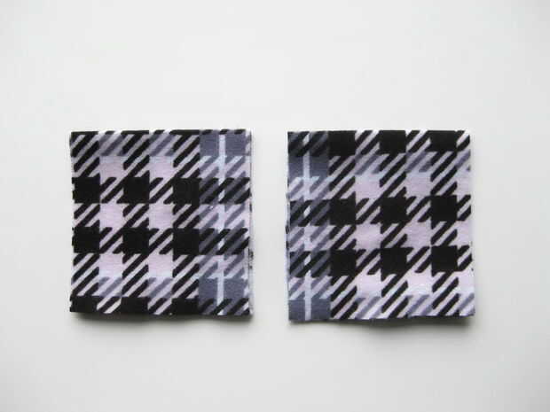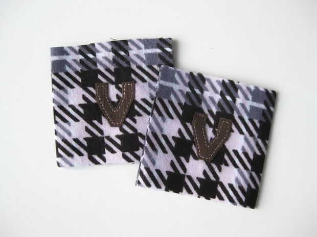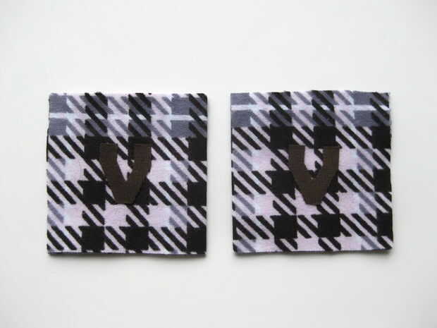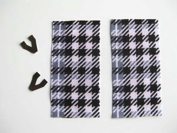 1. Corte 2 piezas de tela que son 3 "x 6". En una tela de contraste, recortar sus iniciales deseados