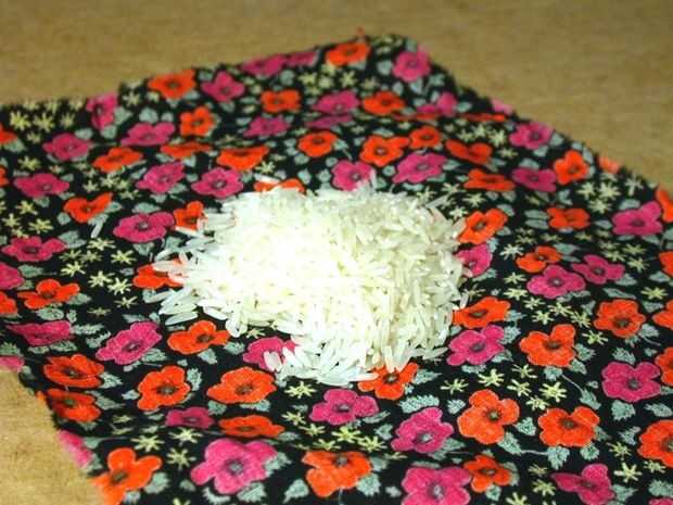 esto es una solución barata y fácil de calentamiento! Usted puede hacer una calefacción del cojín de una variedad de tela, rellenarlo con arroz o harina de avena y agregar hierbas secas (o en mi caso, una bolsita perfumada de telas de Jo-Ann) para u
