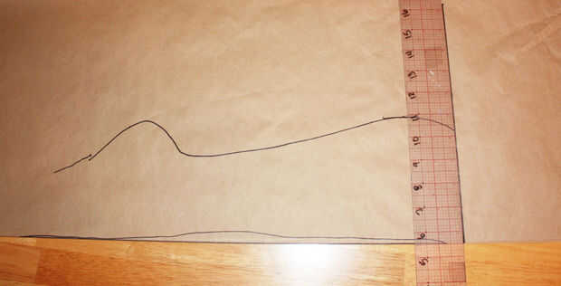 Dibujar una línea perpendicular a la tapa en la parte superior de la línea de diseño. He añadido 5 pulgadas de altura que me sqaured. Lo hice para que mi pata tendría más scrunch. La cantidad que añades o no depende de su propia elección.