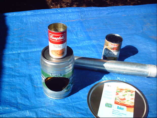 No cortar la parte inferior entera de la lata de sopa. En su lugar, corte un agujero en el centro de la parte inferior de la lata de sopa dejando de banda de 3/8 de pulgada (1 cm) de metal alrededor del perímetro. Utilicé unas tijeras para chapa. Diapositiva que la sopa puede sobre lengüetas superiores barril y curva que las pestañas hacia atrás sobre la sopa puede inferior banda perimetral. Utilicé un trozo de espiga para doblar las lengüetas hacia atrás. Se podría utilizar un mango de martillo. Para un montaje más seguro, taladre a través de las lengüetas y sopa puede e instalar 2-3 chapa tornillos juntos las fichas, puede y barrilete.