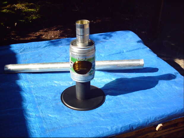 Inserte el tubo de la estufa en la sopa puede collar de la chimenea. Puede que necesite hacer cuñas de chapa para asegurar un ajuste apretado de la chimenea. Utilizar la parte cortada de la parte del barril o edad puede las tapas.