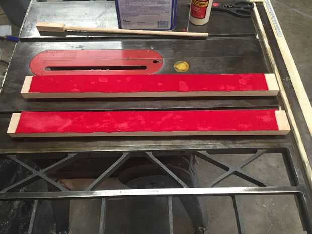 Cortar las piezas de fieltro a un tamaño apropiado y pegar en un lado de las dos tablas de madera dura de ¾ "x 2". Deje una pulgada o dos en cada extremo. Estos hará que el marco del medidor de contorno.