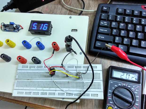 Probando el circuito en protoboard dando salida deseada. Hasta 30 mA.