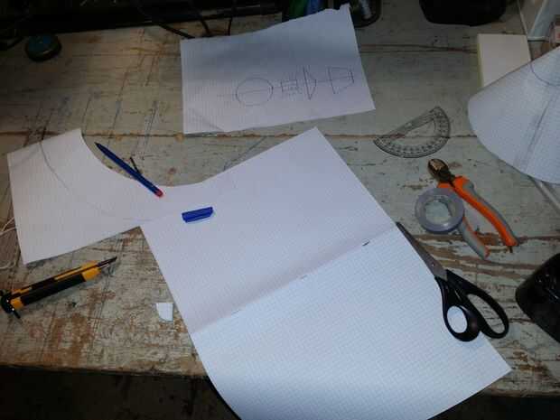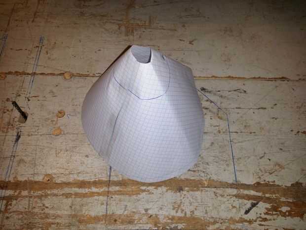 Para modelarla, saqué la mitad de un disco en el papel A4 con un agujero en el centro con mi brújula XXL que construí en mi Instructable anterior, y lo corte con un cuchillo de precisión.