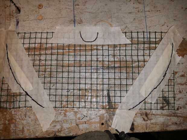 Luego, coloque el modelo sobre la parrilla encima de alguna cinta de enmascarar, marca la forma y cortar utilizando el cortador de alambre.