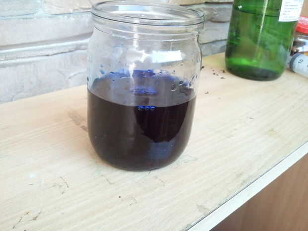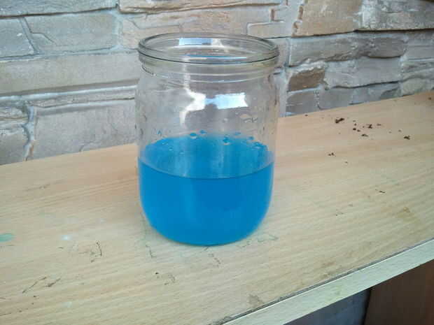 Solución está lista. Es bastante estable y puede almacenarse durante mucho tiempo sin perder sus propiedades. Utilice el envase cerrado herméticamente y guarde en lugar seco, lejos de la luz solar directa y lejos del alcance de niños y mascotas. Puesto que la solución contiene compuestos de cobre, puede ser tóxico si lo bebe, lo que no se recomienda hacerlo así :)