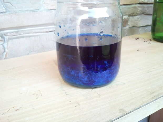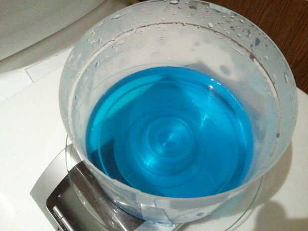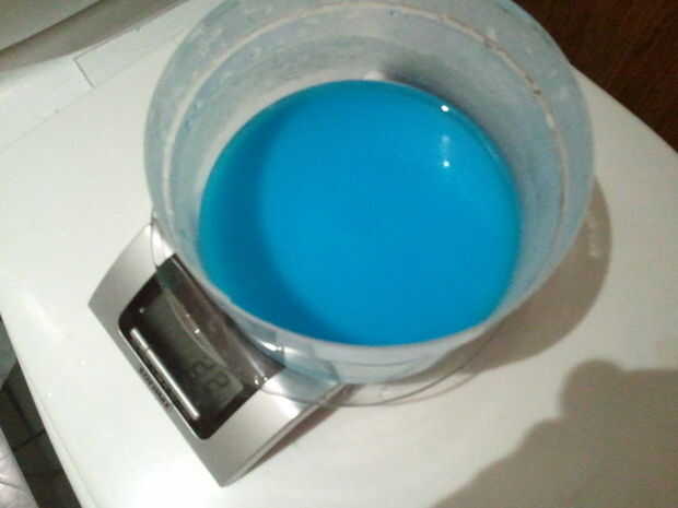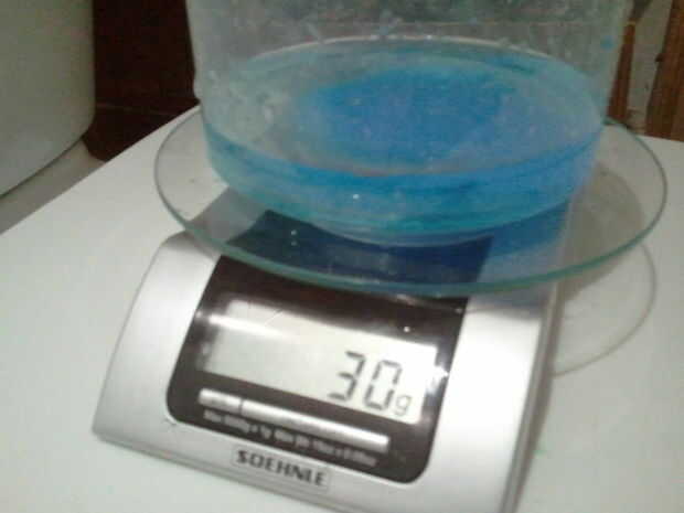 1. toma 140ml de agua y disolver 30g de sulfato de cobre en el mismo. Revuelva hasta que se disuelva el sulfato de cobre todos. En este punto solución tendrá color azul claro.